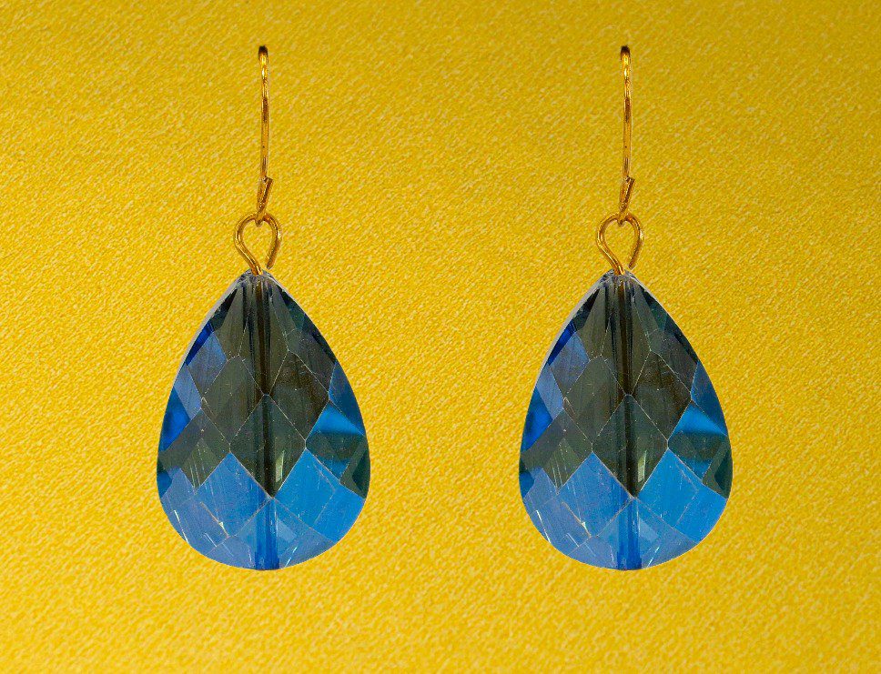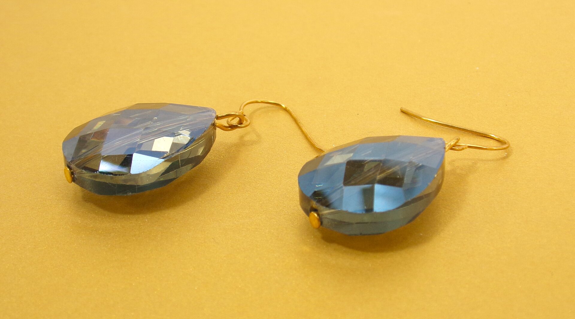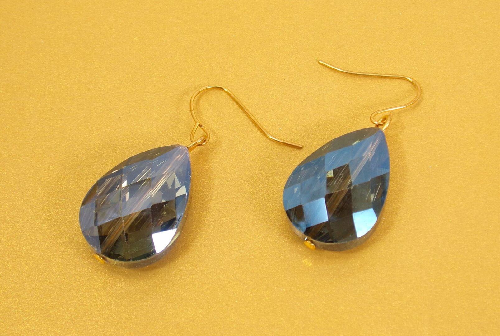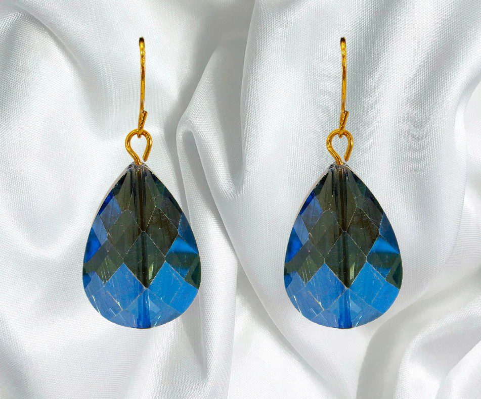 Large blue glass teardrop beaded earrings with a sparkling aurora borealis finish. A pretty blue accent that works for any occasion.