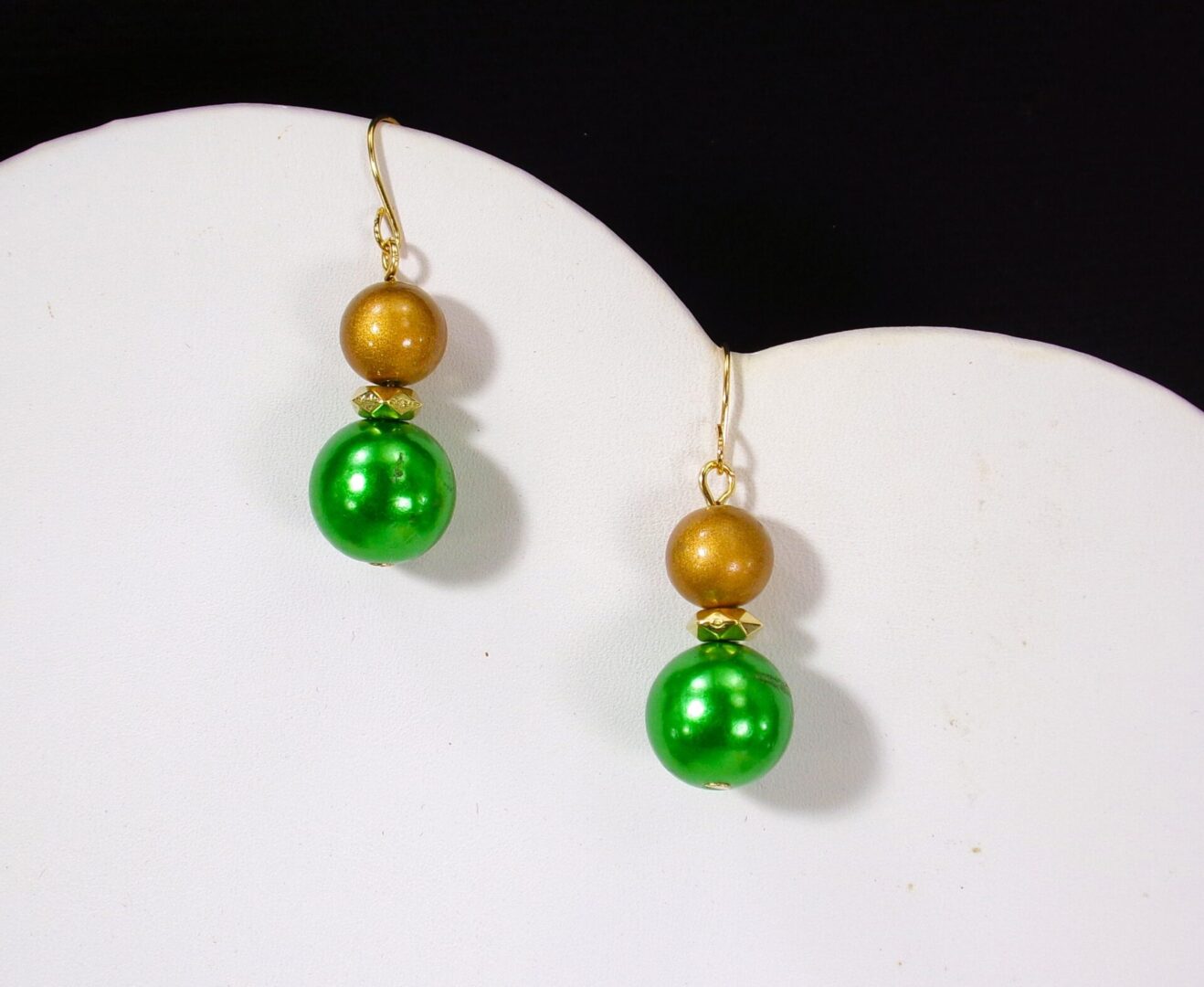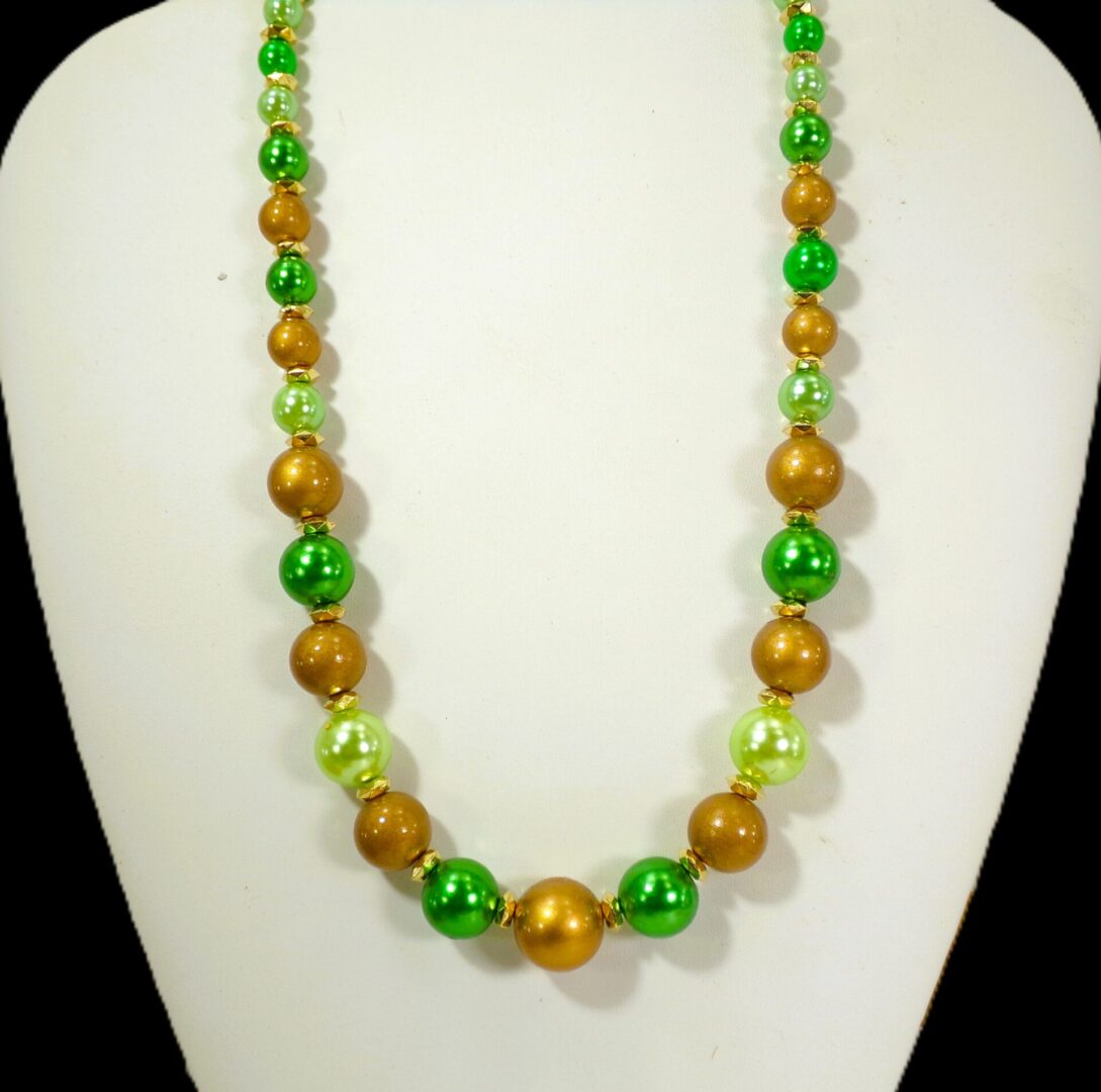 GREEN AND GOLD BEAD NECKLACE AND EARRING SET