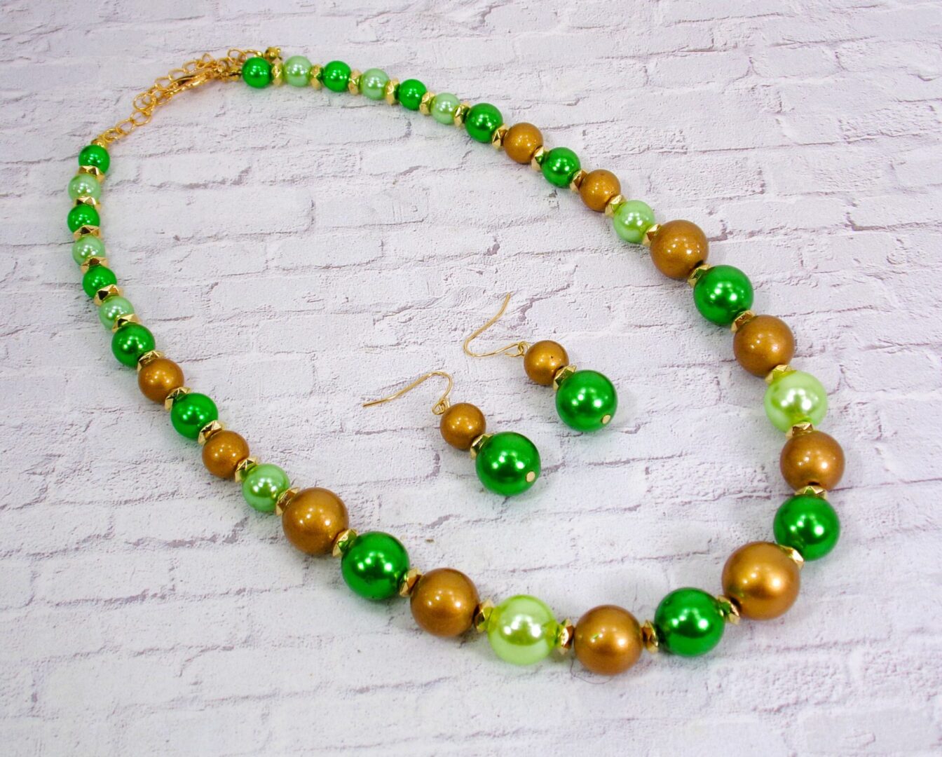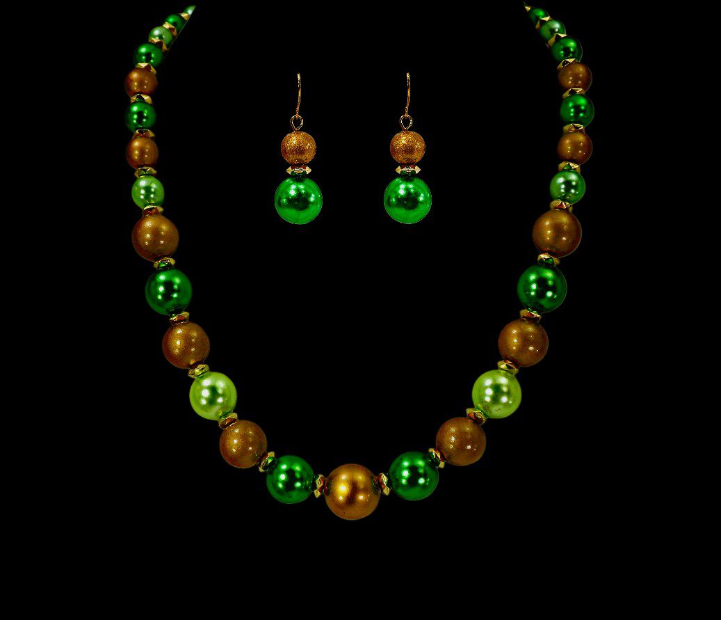Be the first to review “GREEN AND GOLD BEAD NECKLACE AND EARRING SET”