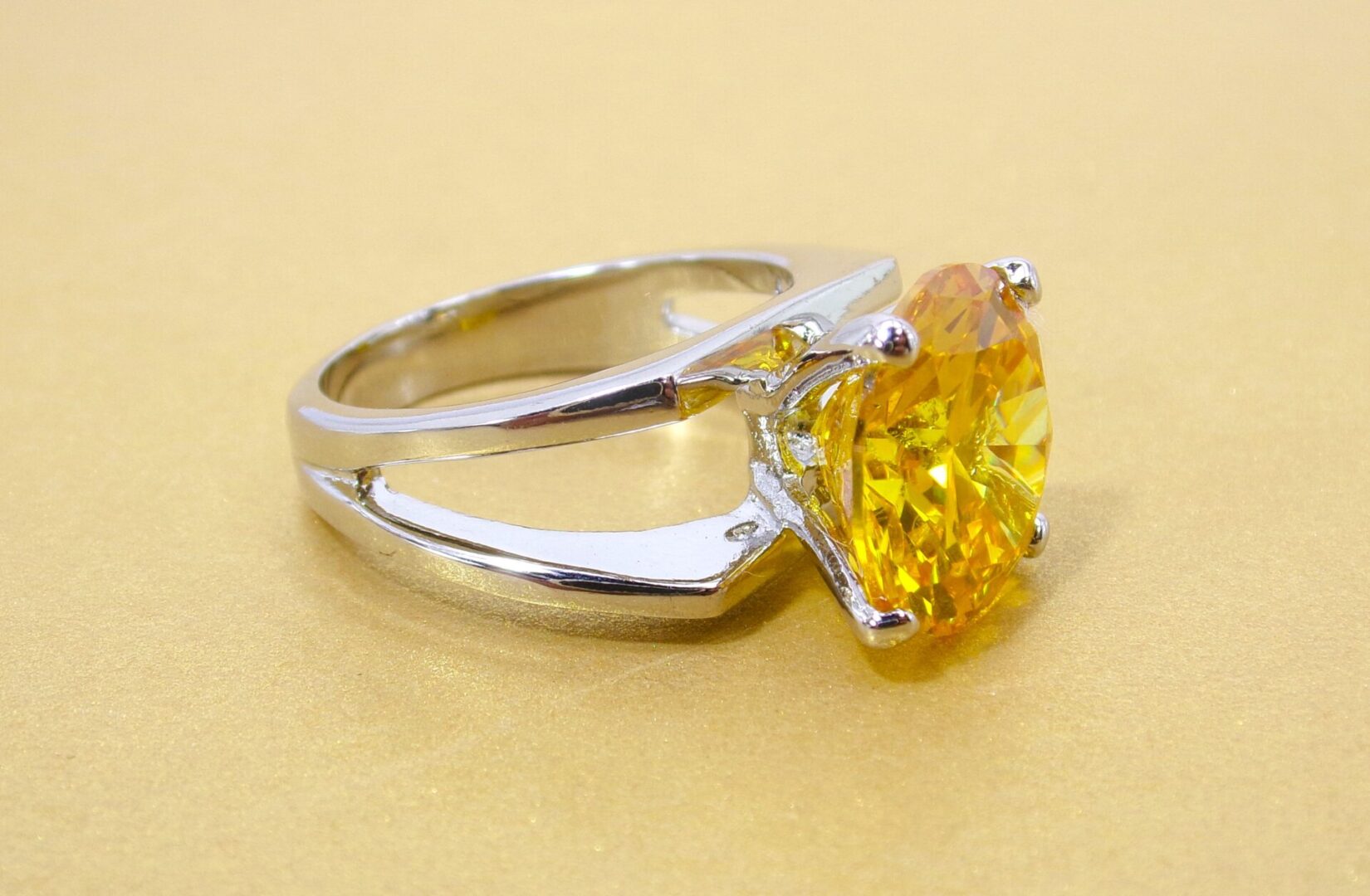 LARGE YELLOW SOLITAIRE CUBIC ZIRCONIA STONE RING SIZE 7