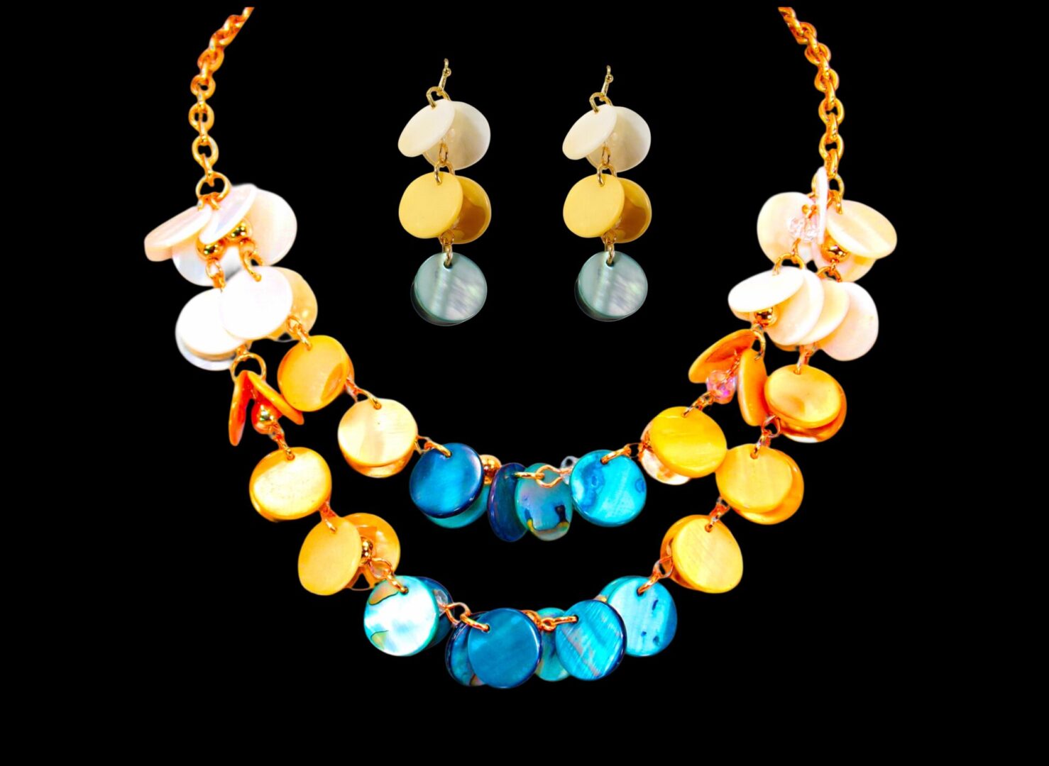 MULTI COLOR SHELL NECKLACE AND EARRING SET