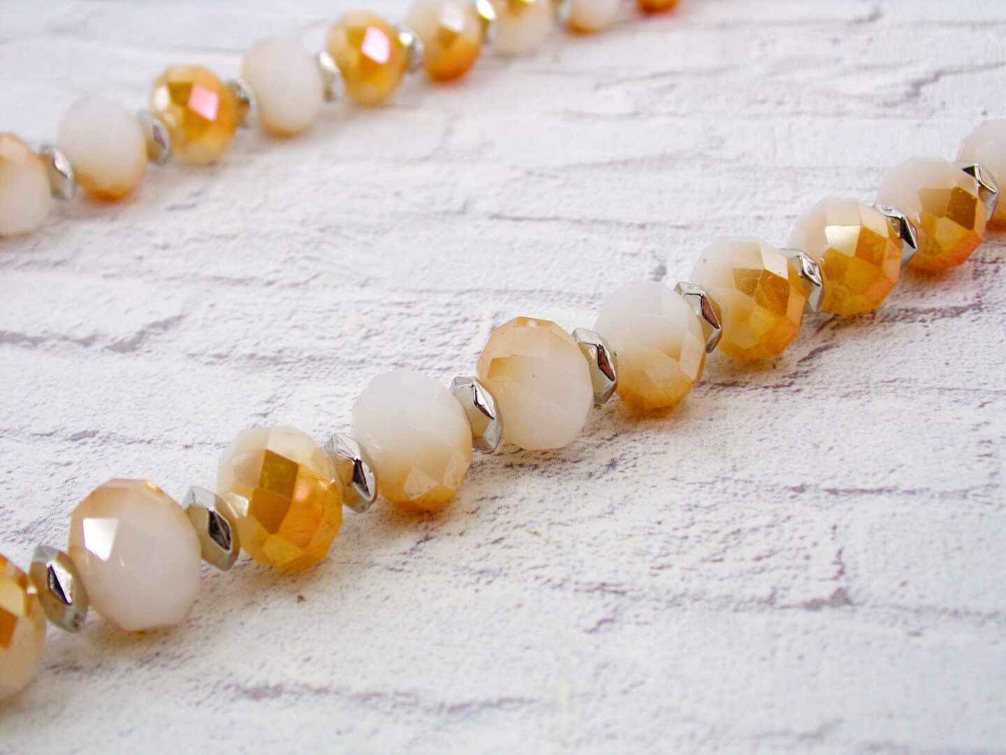• The rondelle glass beads are .31″ x .40″ and on the top .23″ x .19″