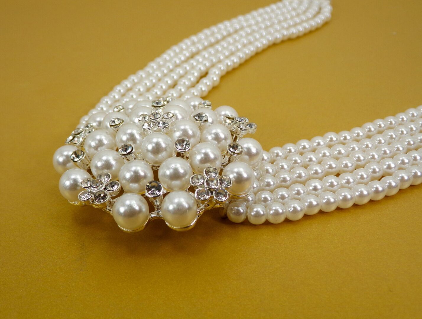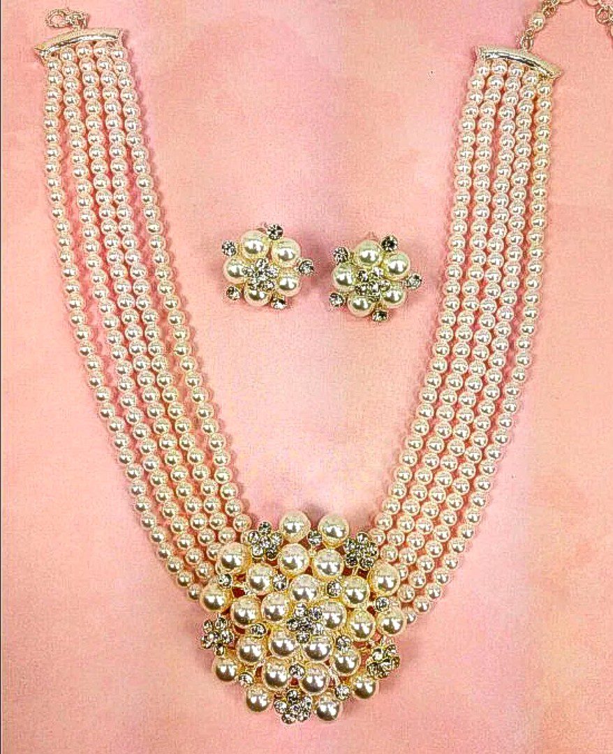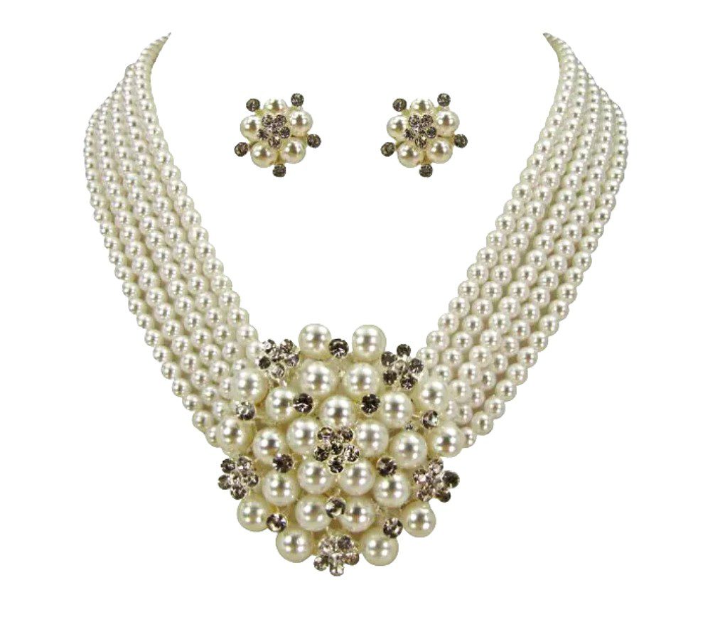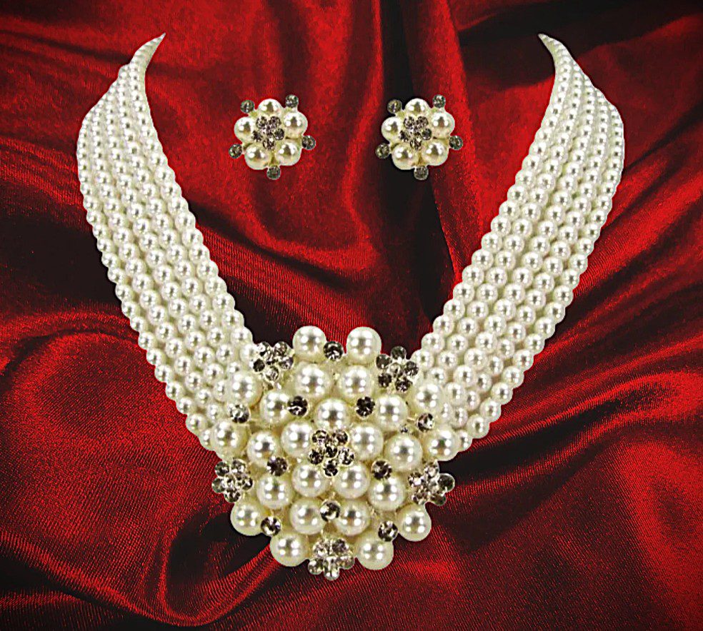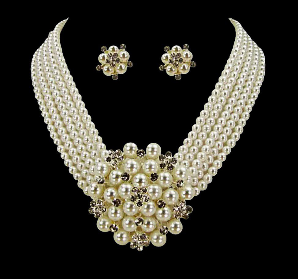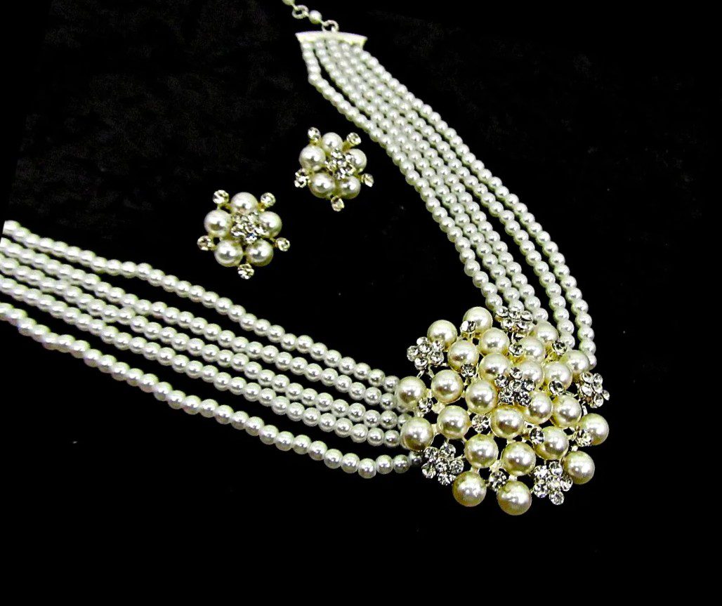 Whether worn with a bridal gown, evening dress, or formal attire, this dramatic pearl necklace set adds classic luxury and unforgettable style.