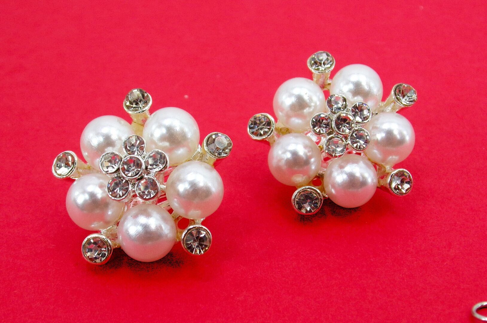 Coordinating 1 inch pearl and crystal Clip earrings complete the elegant jewelry set.