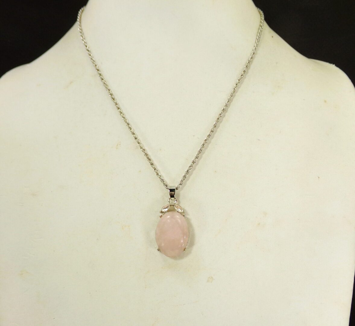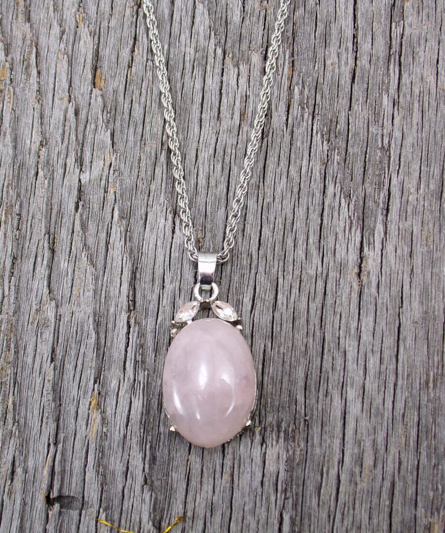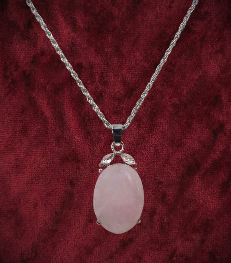 The pendant is hand crafted with many pink quartz stones selected by hand so the color or lines in the stone can vary very slightly.