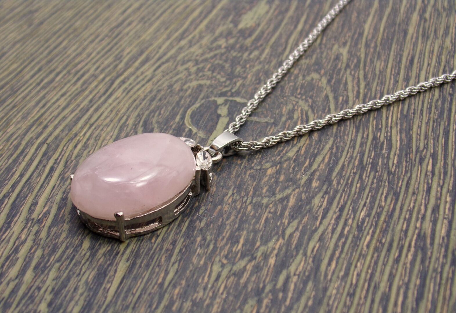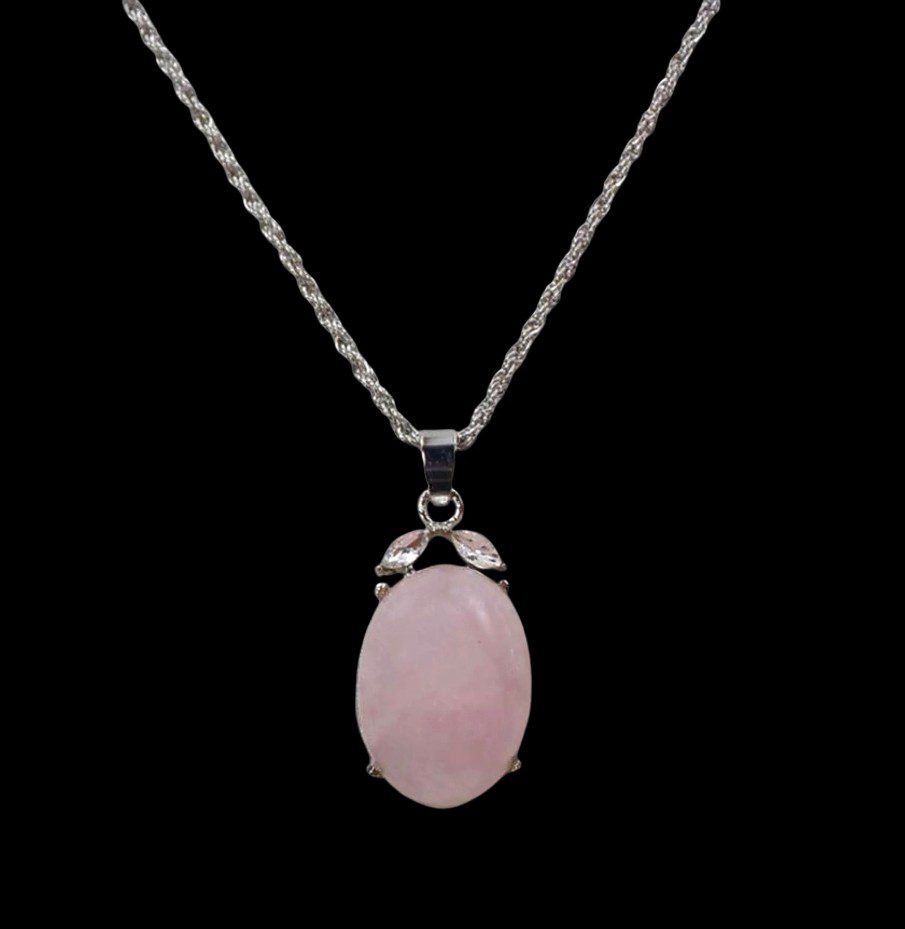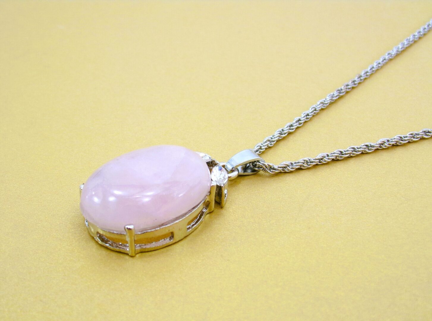 Delicate, romantic, and timeless — this rose quartz pendant necklace captures the beauty of soft femininity and quiet luxury. Featuring a naturally polished oval rose quartz cabochon, the stone glows with a gentle blush-pink hue that feels refined, calming, and effortlessly elegant.