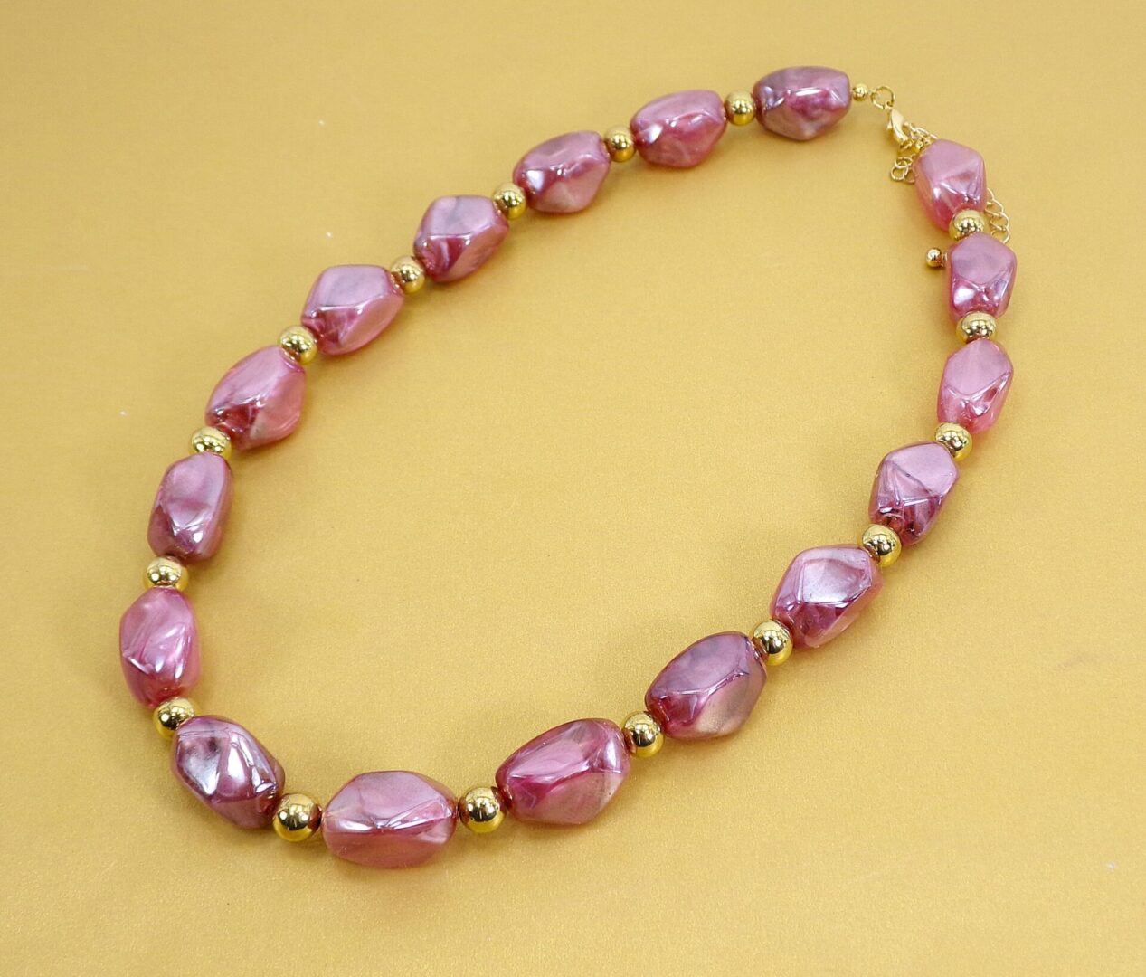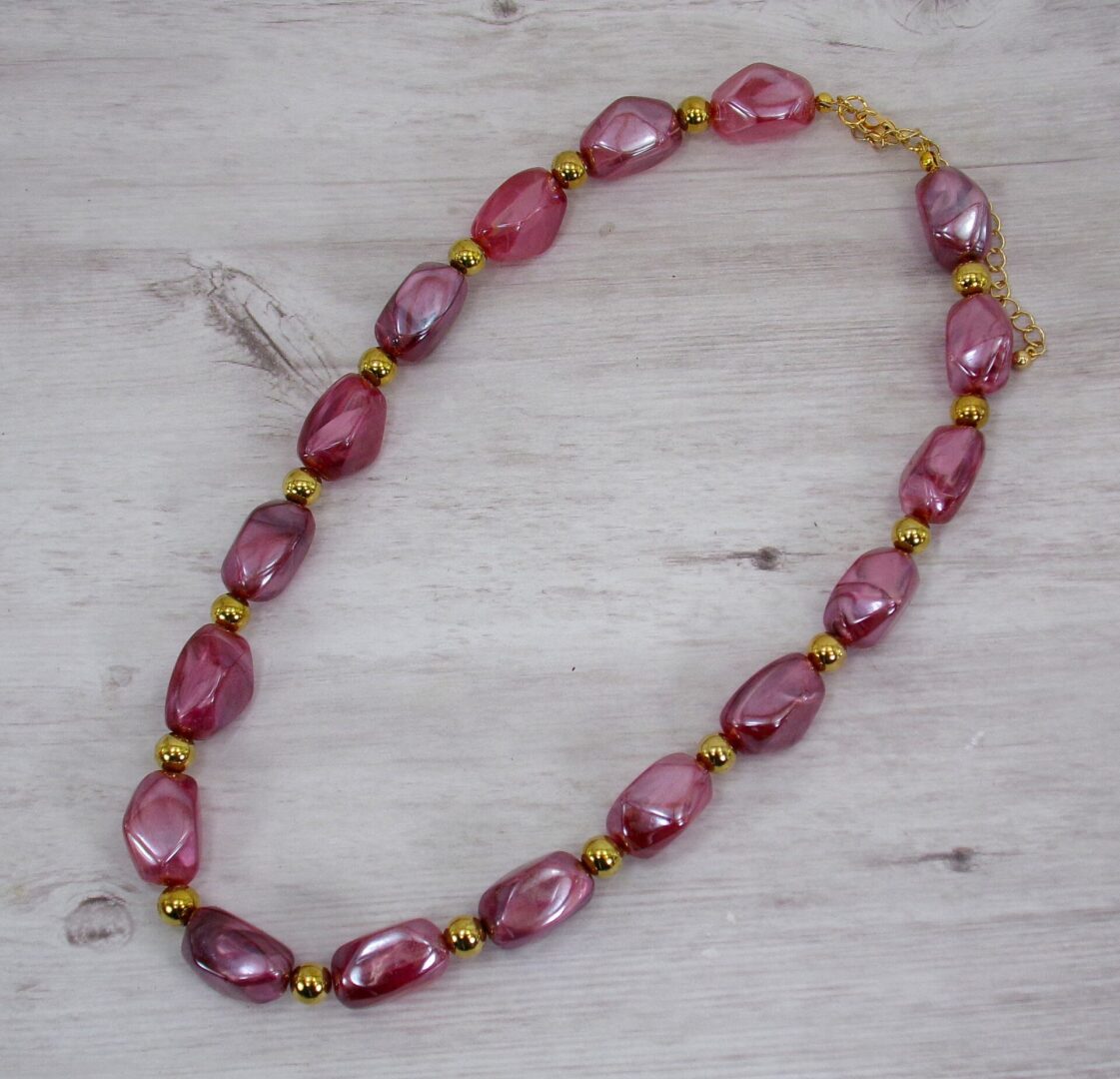 A lightweight purple and gold beaded necklace set with a polished marbled finish for an elegant yet effortless look.