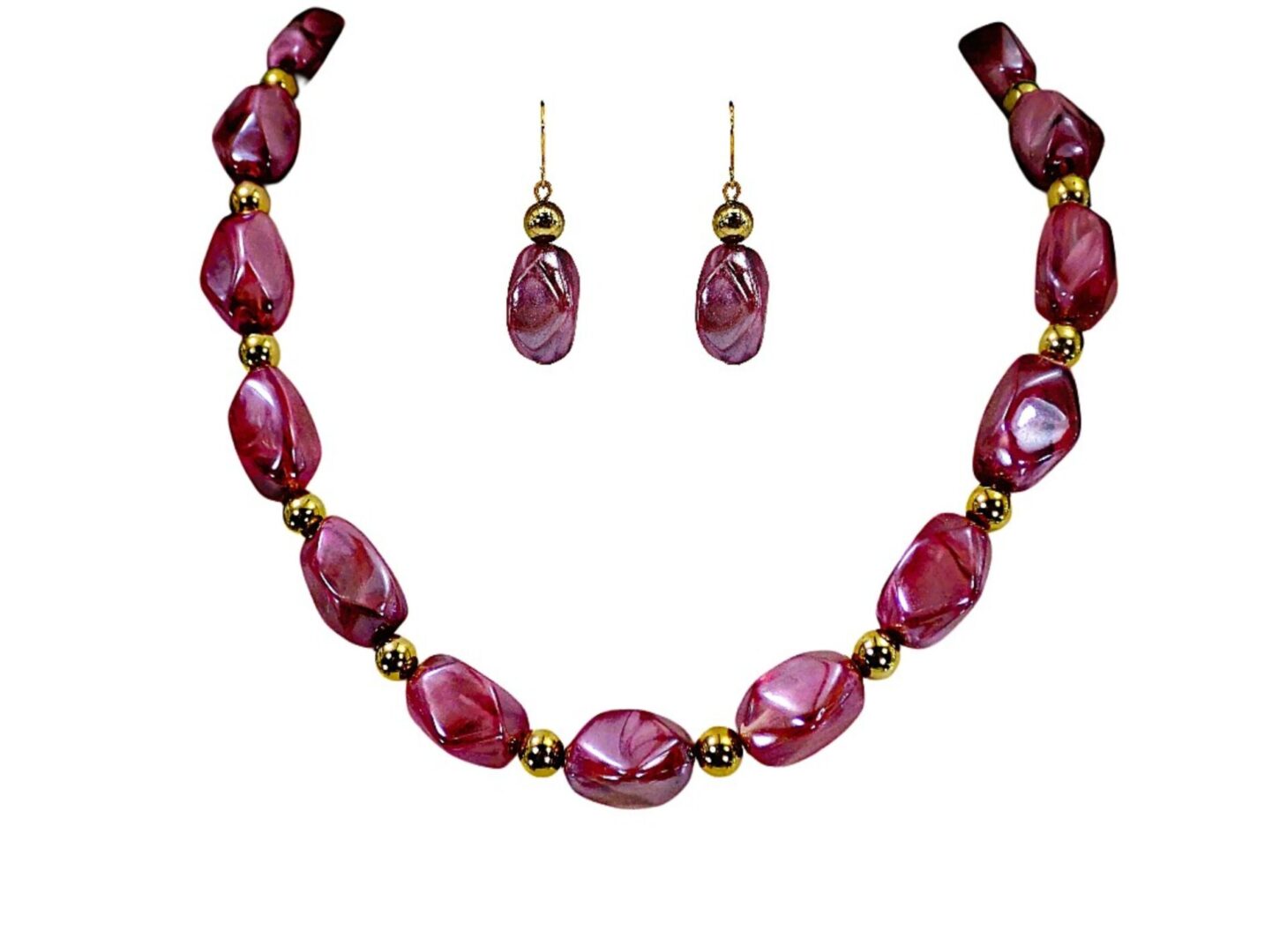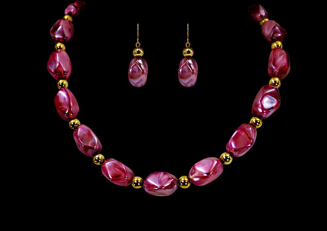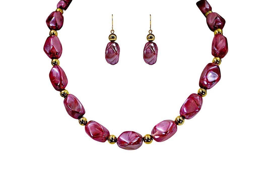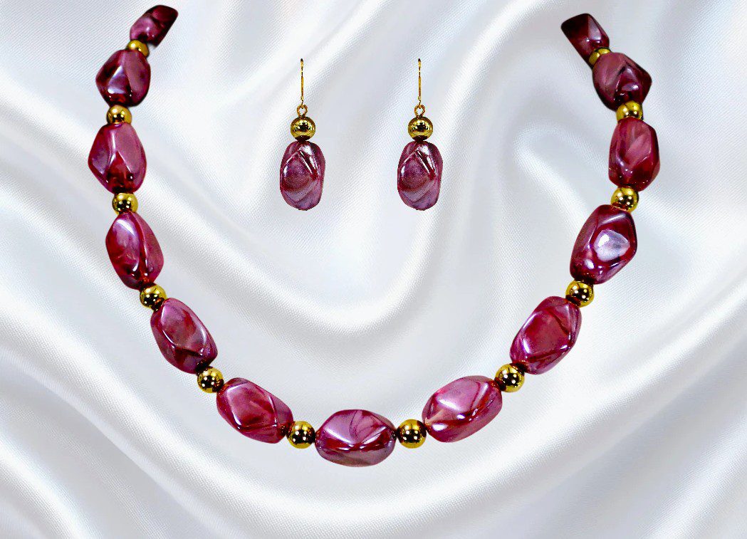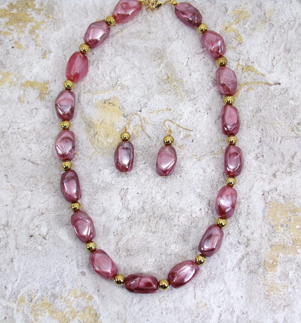 Refined yet effortlessly wearable, this purple and gold beaded jewelry set brings a perfect balance of elegance and everyday style. Featuring glossy marbled beads that emulate the beauty of natural stone, each piece is designed to offer visual richness without the weight.